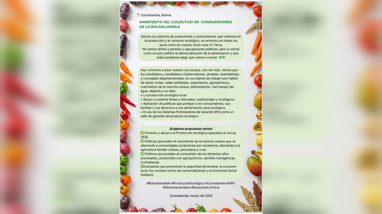 Colectivo de la BolsaSaludable exige propuestas claras sobre producción ecológica en Cochabamba