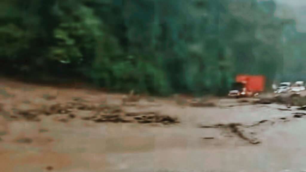 La intensa lluvia dificultó las labores de limpieza y estabilización, provocando además el desborde de un río, lo que incrementó el riesgo para transportistas y pasajeros.