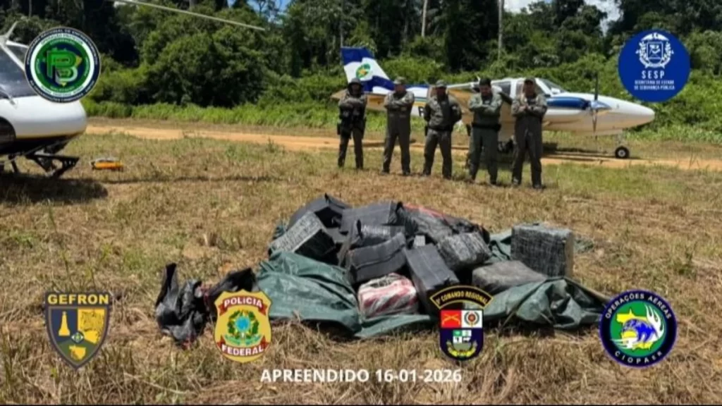 BRASIL. – Un operativo conjunto de distintas fuerzas de seguridad de Brasil concluyó con la aprehensión de una avioneta, la incautación de cerca de 500 kilos de clorhidrato de cocaína y la detención del piloto implicado en el transporte de la droga, presuntamente originaria de Bolivia. La acción se registró el 16 de enero y representó un golpe significativo para las estructuras del narcotráfico, con pérdidas estimadas en hasta R$ 12,5 millones para las bandas involucradas.