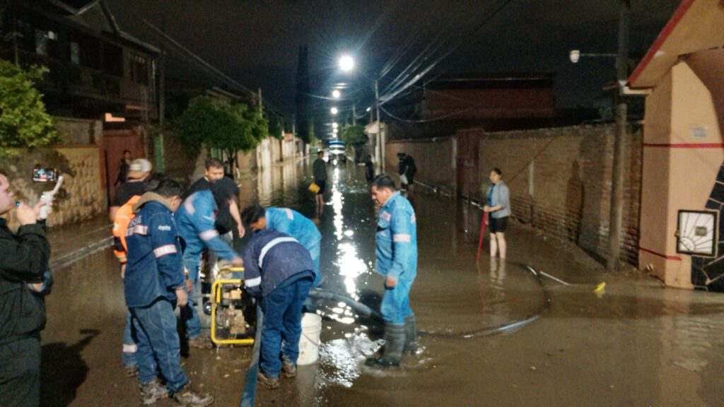 Las cuadrillas de emergencia realizaron labores de drenaje, limpieza de ambientes y desobstrucción de desagües pluviales en distintos puntos críticos, con el fin de reducir el nivel del agua y evitar mayores daños materiales a las familias damnificadas.