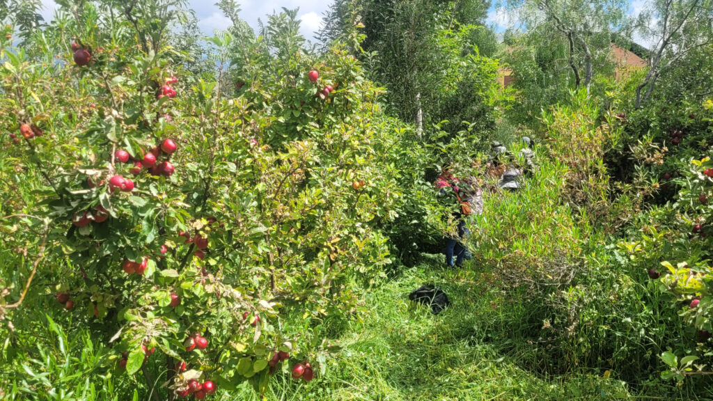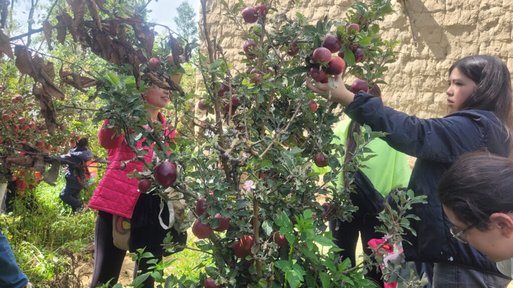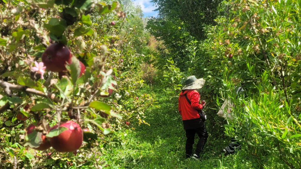 Este sistema, que combina cientos de manzanos con especies forestales y colmenas, no solo produce manzanas dulces y miel, sino que también contribuye a la conservación del agua, la protección del suelo y el fortalecimiento de la soberanía alimentaria del valle alto.