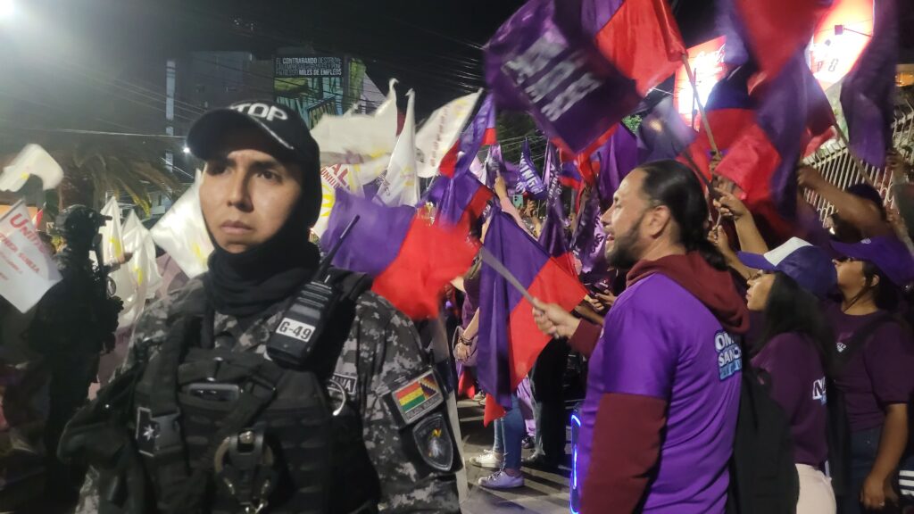 Con banderas, pancartas y consignas de respaldo, los seguidores de cada frente político se mantienen a la expectativa del inicio del debate, que busca contribuir a que la ciudadanía conozca las diferentes visiones y proyectos para el futuro del departamento.
